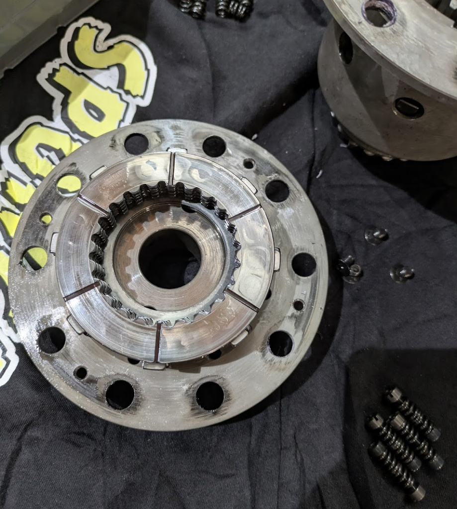 OS Giken heeft een extra mogelijkheid. We beschikken over 3 verschillende veersterkte negatieve voordruk veertjes, 38, 28 en 18kg waar er tussen de 24 en 32 stuks van kunnen gemonteerd worden. Met deze veertjes bepalen we de negatieve voordruk, dus een kracht die voorkomt/tegenwerkt dat er druk op de koppelingsplaten komt. En dat heeft meer effect dan wat de meeste sper afstellers voorstellen. Wij doen 95% van onze tune’s met deze veertjes en dat beperkt flink in de materiaal kosten want een veertje kost slechts 3,50.